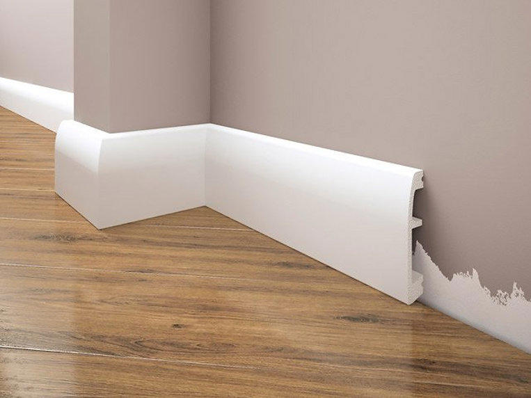 Plinta decorativă albă, fabricată din material dur, este o soluție versatilă și elegantă pentru diverse tipuri de proiecte. Aceasta se montează simplu, prin lipire, și poate fi vopsită în orice nuanță dorită, utilizând vopsele fără derivate din petrol, cum ar fi vopseaua de emulsie, latex, acrilică, acrilică-latex, vopseaua de vinil sau cea ceramică.