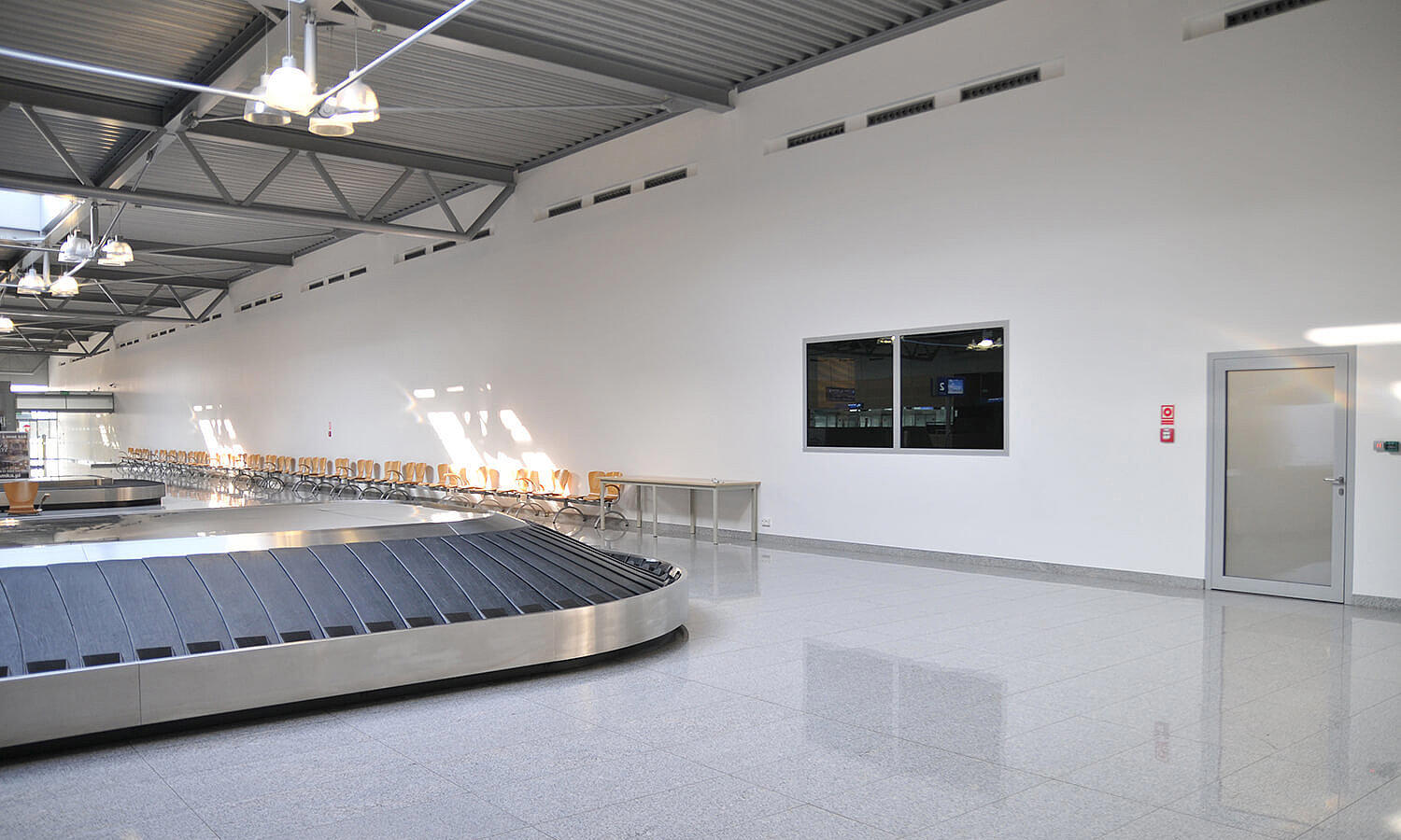 Pentru lucrările din terminal s-a utilizat SYSTEXX Premium 060 (în prezent SYSTEXX Pure Silk 060). Structura sa fină permite obținerea unei suprafețe uniforme, fără îmbinări vizibile, ideală pentru spații ample precum zonele de check-in.
