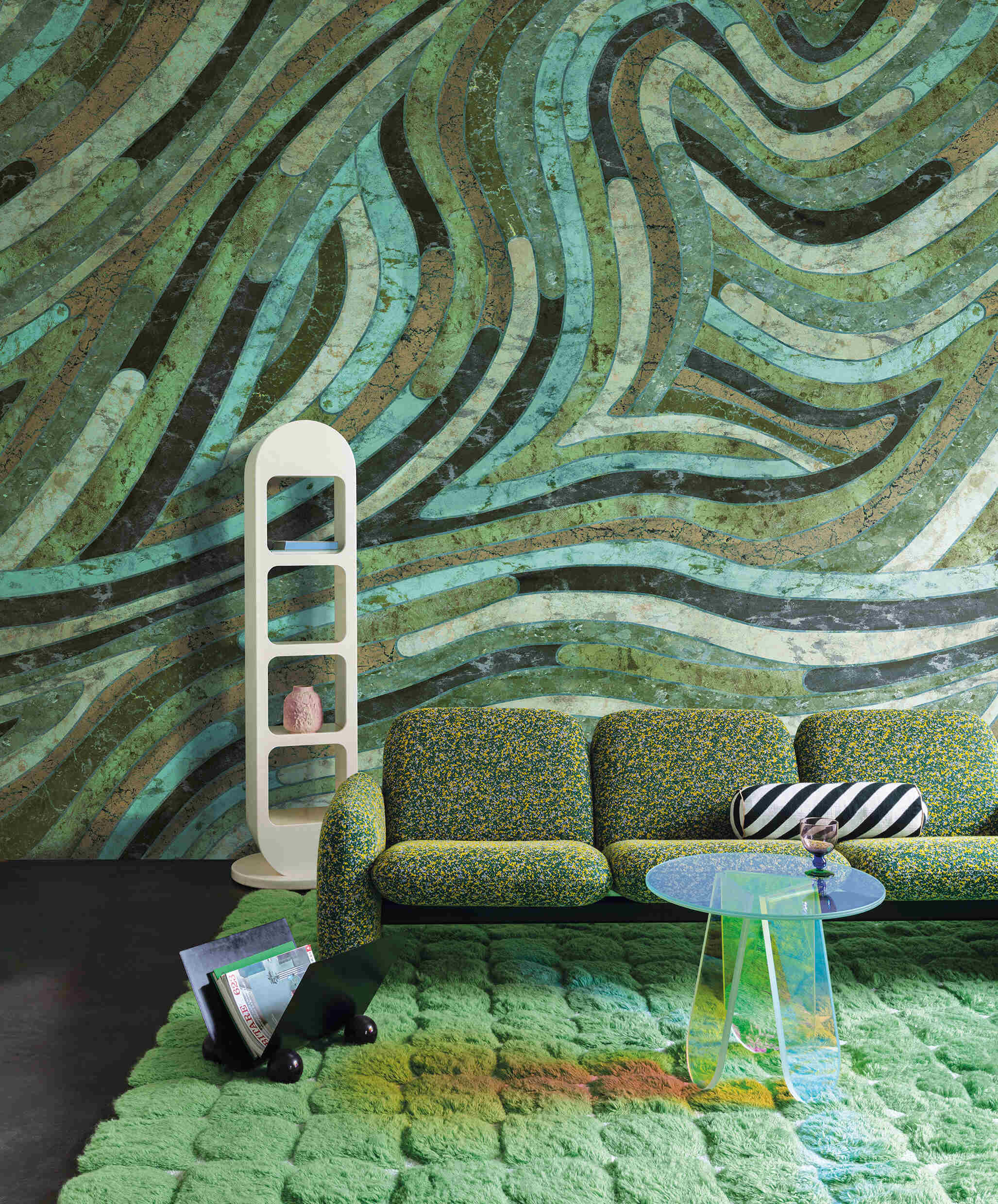 Rezultatele acestui proces impresionant, desfășurat pe parcursul secolelor, reprezintă o sursă inepuizabilă de inspirație. Ne folosim viziunea grafică pentru a le transforma în designuri contemporane, cu caracter arhitectural. Colecția de tapet Rock emană o atmosferă caldă, cu accente retro, și pune în valoare culori atemporale precum jaspul, jadul, onixul, aventurinul, gresia, ardezia și cuarțul.